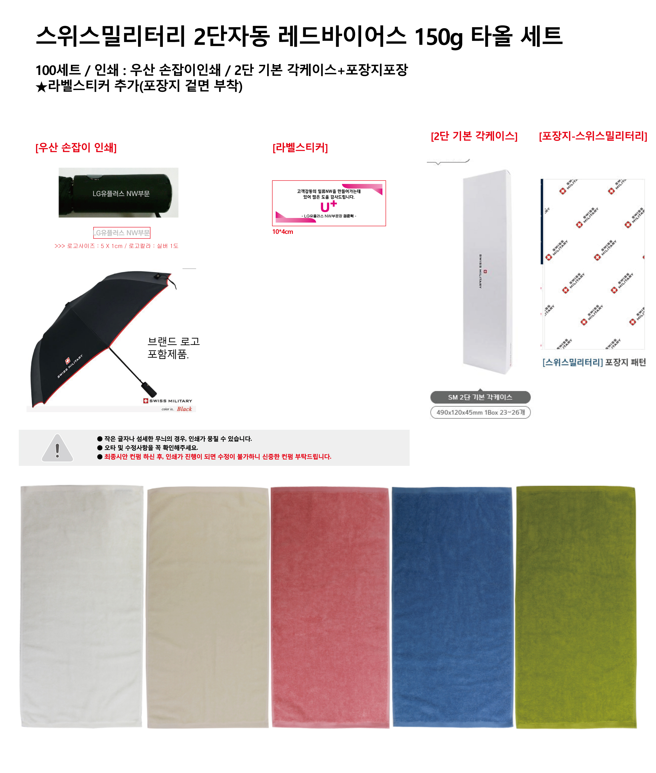 - 이벤트용 세트: 미니우산 + 마이크로화이버 수건 + 로고인쇄